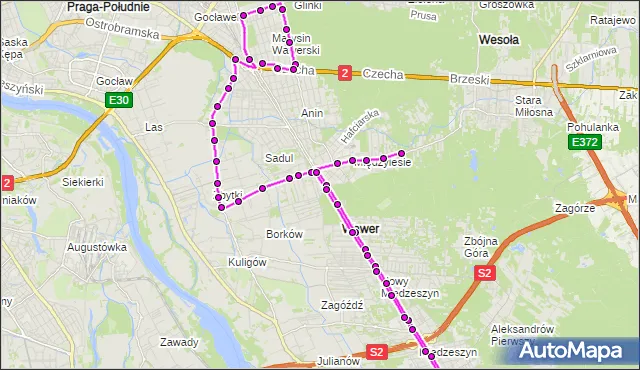 - Obsługuje 1. i 2. strefę biletową ZTM, co wymaga odpowiedniego biletu na pełnej trasie.